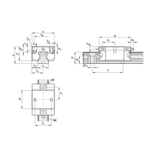 - Intercambiabilidad ilimitada gracias a la posibilidad de combinar todos los modelos de raíles guía de bolas con todas las variantes de patines de bolas dentro de cada clase de precisión