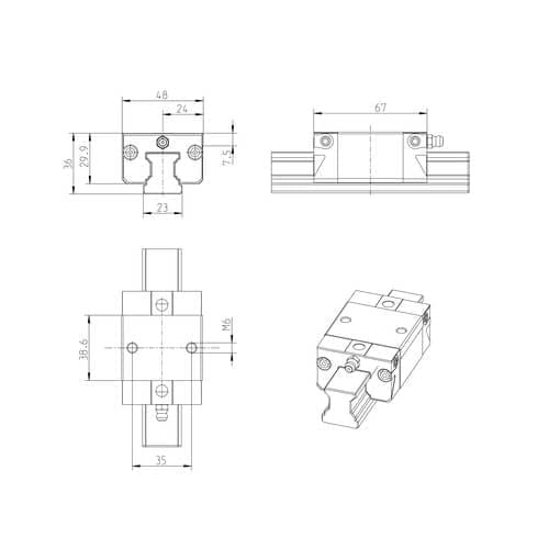 - Construcción intercambiable: los patines y raíles guía se pueden combinar entre sí con precisión.